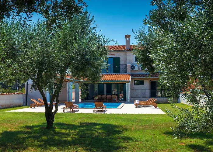 Villa Pomer는 4개 침실로 구성됩니다. 욕실에는 4개의 욕실이 있습니다.